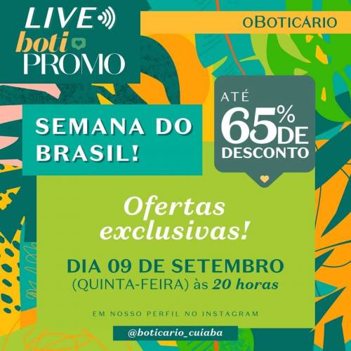 A Boti Promo Semana do Brasil está de volta e tem live com ofertas exclusivas. No dia 9 de setembro, às 20h (horário de MT), o Grupo...