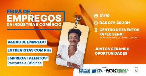 Fiemt e CDL Cuiabá ofertam mais de 3 mil vagas de empregos na maior Feira de Empregos da Indústria e Comércio de MT