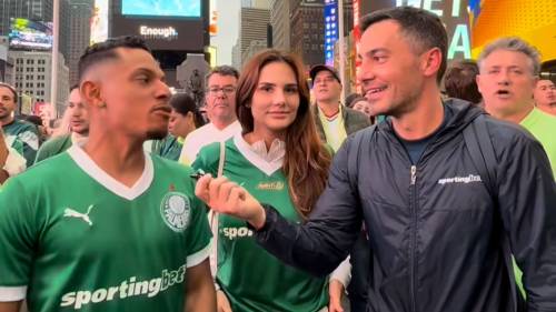 Palmeirense de MT participa de invasão alviverde na Times Square em festa em Nova York