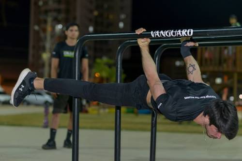 Aula experimental de calistenia na Praça do Bom Clima atrai praticantes