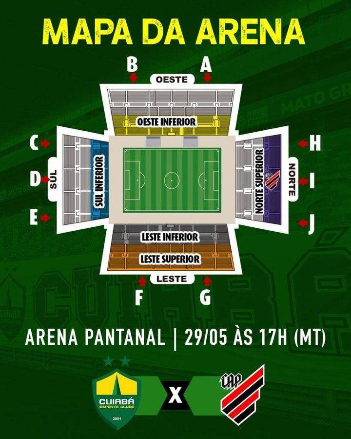 Cuiabá e Athletico-PR se enfrentam no domingo (29.05), às 17h (de Cuiabá), na Arena Pantanal, pelo Campeonato Brasileiro. Com valores a partir de R$ 10, o Cuiabá iniciou a venda de ingressos, que segue até o dia da partida.