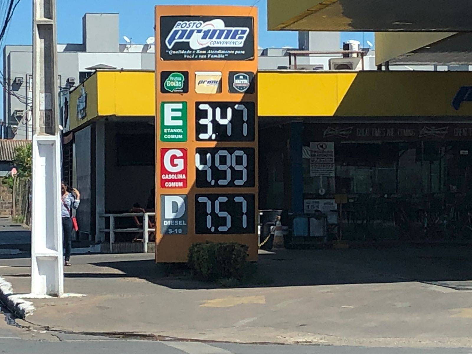 Em novo movimento de baixa, os valores de bomba para o litro da gasolina passaram de cerca de R$ 5,07 e R$ 5,09 – os mais baixos até então – para R$ 4,99, em postos localizados em Cuiabá e Várzea Grande.