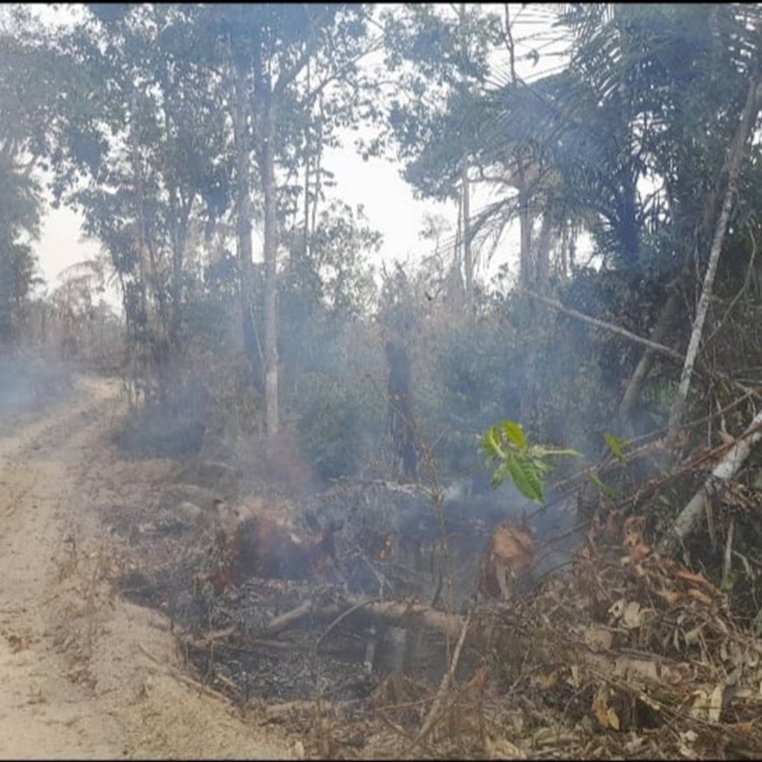 Além do desmatamento também foram realizadas queimadas ilegal, causando a destruição da flora local.