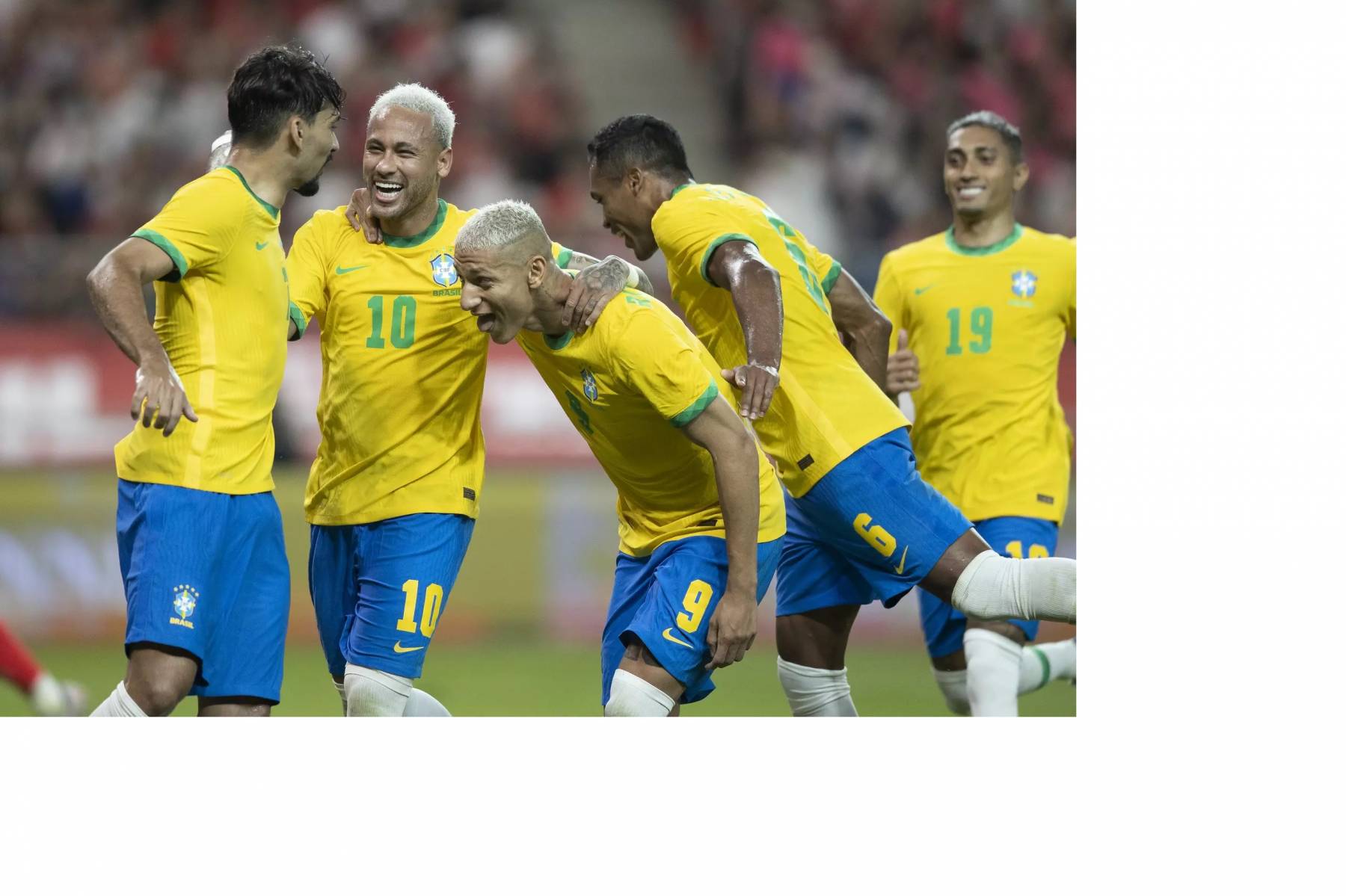 Jogadores da Seleção Brasileira festejaram bastante em campo com a torcida. Muitos pularam e jogaram água ao final da vitória por 2 a 0. Brasil estreia em cidade que foi construída do zero para Copa do Mundo. Com dois de Richarlison, Brasil vence a Sérvia por 2x0 e assume a liderança do grupo G!