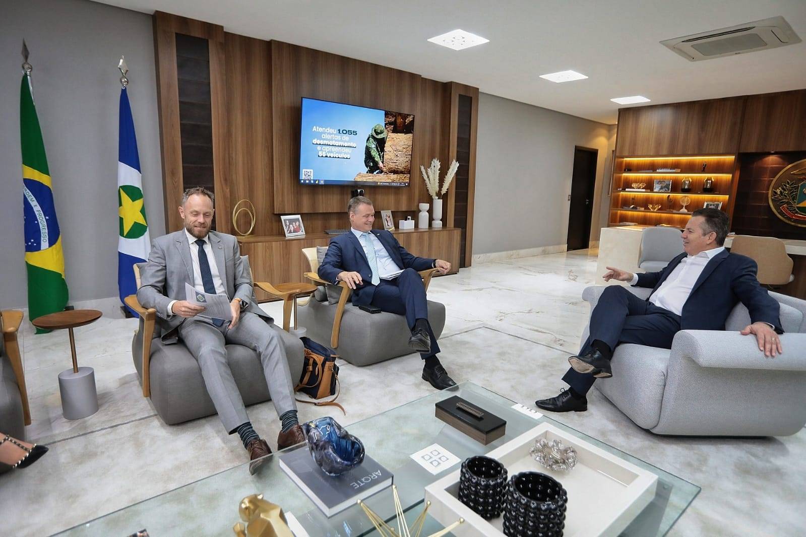 O representante norueguês se reuniu com o governador Mauro Mendes, na manhã desta quarta-feira (26.04), no Palácio Paiaguás, em Cuiabá. Na terça, ele também conversou com o vice-governador Otaviano Pivetta.
