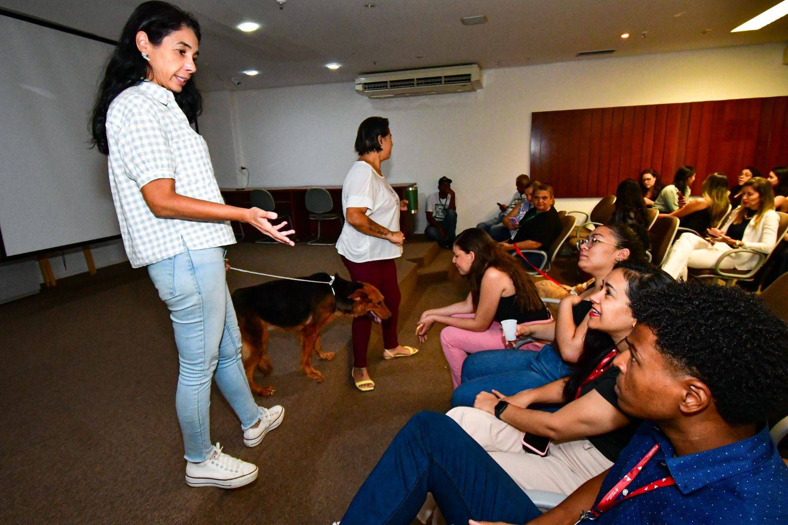 A palestrante, médica veterinária Tatiana Soares, falou sobre o os processos de denúncias, em quais situações o município pode intervir e ainda como os cidadãos devem agir quando encontrarem animais maltratados ou abandonados.