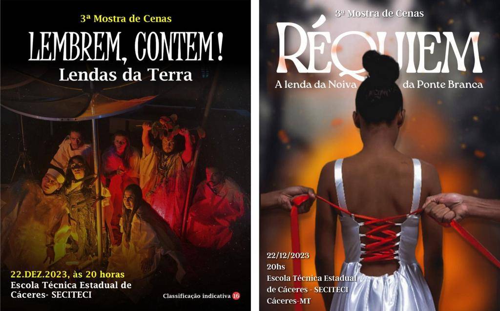 Na sexta-feira (22), a partir das 19 horas, na Escola Técnica Estadual de Cáceres, acontece a terceira edição da Mostra de Cenas do Curso Superior de Tecnologia em Teatro. Com o tema Lendas Brasileiras, o espetáculo é aberto ao público e tem classificação etária indicativa de 16 anos. A entrada é um quilo de alimento não perecível.