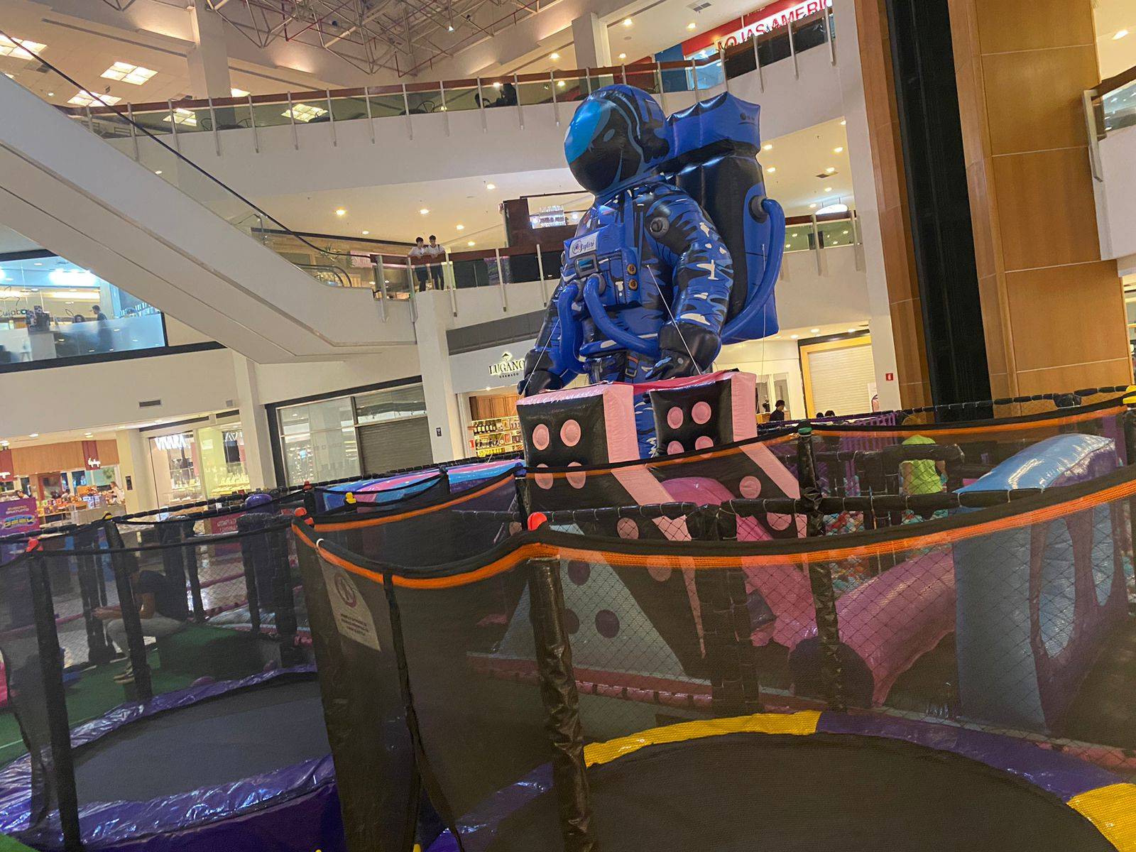 Parque com temática espacial permite pular e brincar pelo circuito de obstáculos