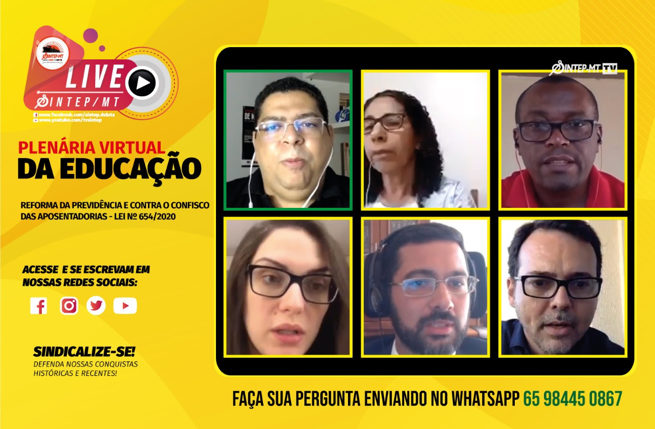Buscar na Justiça ou com um novo Projeto de Lei a suspensão do confisco de 14% dos salários dos servidores aposentados do estado e ainda, pressionar os deputados para a extinção do Projeto de Emenda Constitucional nº 6/2020, segunda etapa da Reforma da Previdência de Mauro Mendes. Essas foram as deliberações da Plenária virtual realizada pelo Sindicato dos Trabalhadores no Ensino Público de Mato Grosso (Sintep/MT), nesta segunda-feira (10.08) pelo facebook e youtube do Sintep/MT. O debate apresentou esclarecimentos à categoria sobre as medidas, ainda ignorada por grande parte dos trabalhadores.