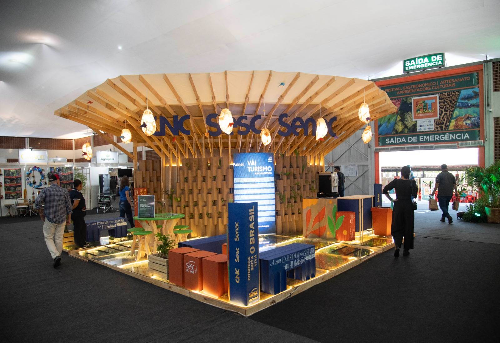 O estande reciclável ainda é um convite para o público admirar as belezas das diferentes regiões do Brasil e conhecer as unidades hoteleiras do Sesc em cada canto. No principal espaço aberto foi construído um teto pergolado que remete a uma árvore, feito com madeira de reflorestamento. Os visitantes terão experiências no corredor sensorial com cores, sons, aromas e texturas dos biomas para explorar os sentidos. Ao final, podem participar de um sorteio interativo com premiação.