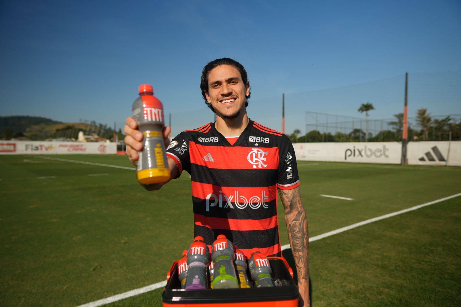 Um dos jogadores brasileiros com mais participações em gols desde que chegou à Gávea, Pedro foi escolhido pela TNT Energy Drink para ser o rosto do patrocínio ao Flamengo. “Está sendo divertido fazer parte desse projeto e tenho certeza de que os fãs vão adorar o conteúdo que estamos preparando nas redes sociais de TNT, estou empolgado com a parceria”, comenta Pedro Guilherme, centroavante do Flamengo.