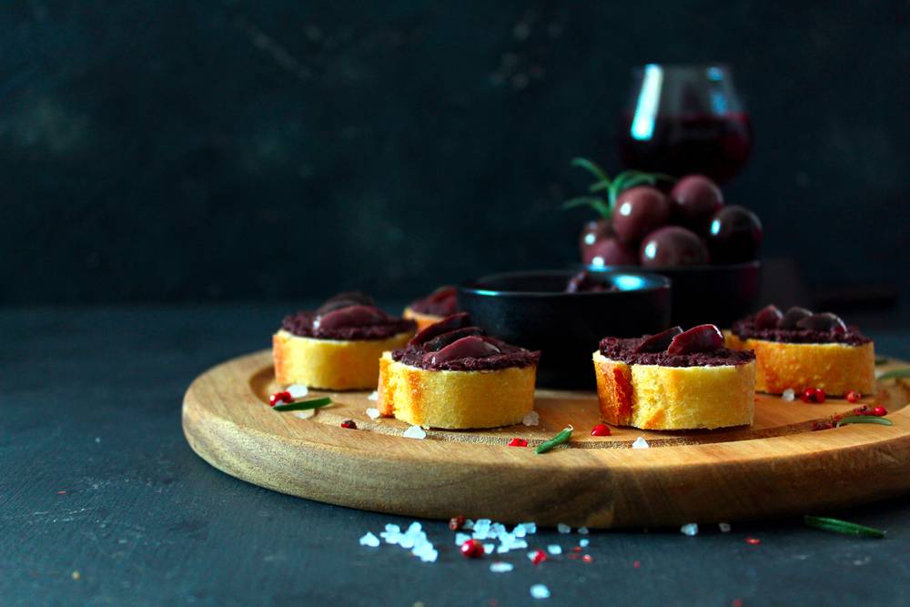 Tapenade de azeitonas pretas com canapés