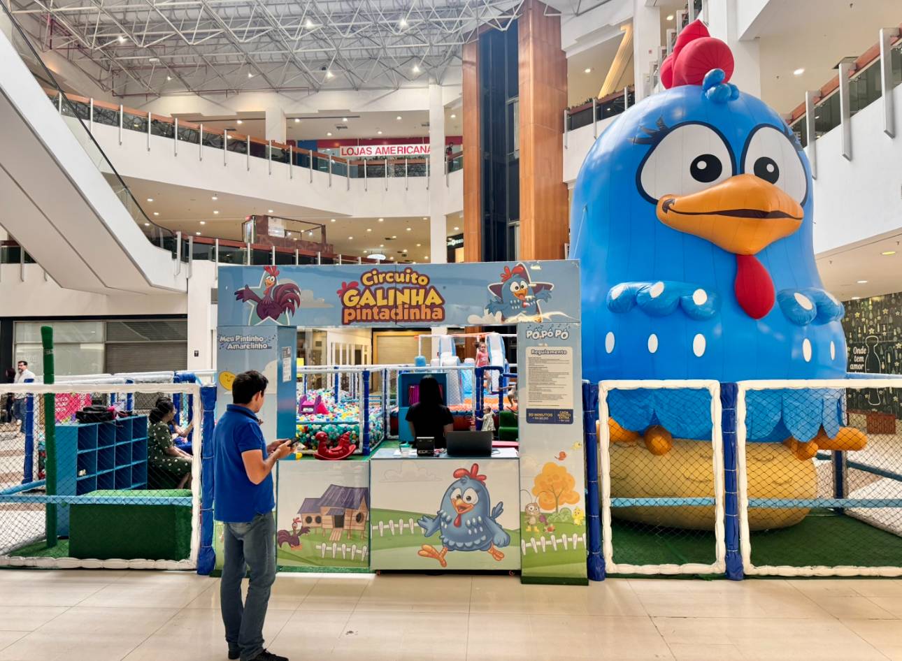 A Praça Central do shopping se transformou em um universo encantado com a chegada do parque temático da Galinha Pintadinha. Os pequenos vão poder mergulhar em uma piscina de bolinhas, pular na cama elástica e deslizar pelo escorregador, em um espaço que garante horas de diversão.