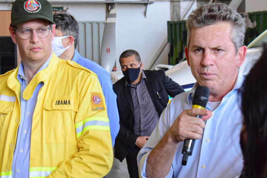 Ao lado do governador Mauro Mendes em coletiva no Aeroporto Marecha Rondon, o ministro disse que mais disponibilizar mais R$ 10 milhões para essa operação de recursos do Ibama e do ICMBio. o valor é para que as aeronaves disponibilizadas fiquem somente no combate a esse incêndio.
