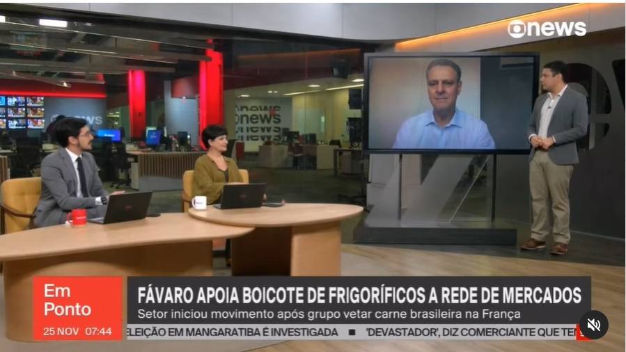 Ele publicou em suas redes sociais um comunicado dizendo que o grupo francês "assumia o compromisso de não comercializar nenhuma carne proveniente do Mercosul", bloco formado por Brasil, Argentina, Paraguai e Uruguai. Conforme Fávaro, as declarações que colocam sob suspeita a sanidade e a qualidade das carnes produzidas no Brasil, afetou a relação entre os frigoríficos e a gigante do varejo francês.