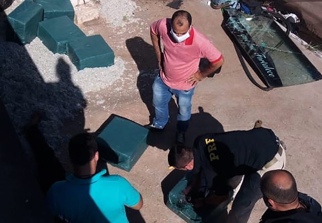 A Polícia Rodoviária Federal (PRF) estava fazendo acompanhamento para verificação de rotina quando a Volvo tombou ao contornar uma rotatória. a droga estava escondida no meio do algodão em 450 tabletes.