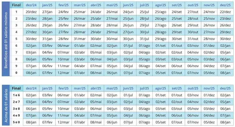 Os depósitos seguirão a sequência de anos anteriores, com um calendário para quem recebe um salário mínimo e outro para quem ganha mais de um salário. Para cada categoria, as datas de pagamento serão determinadas pelo número final do cartão, sem considerar o dígito verificador (que vem depois do traço).