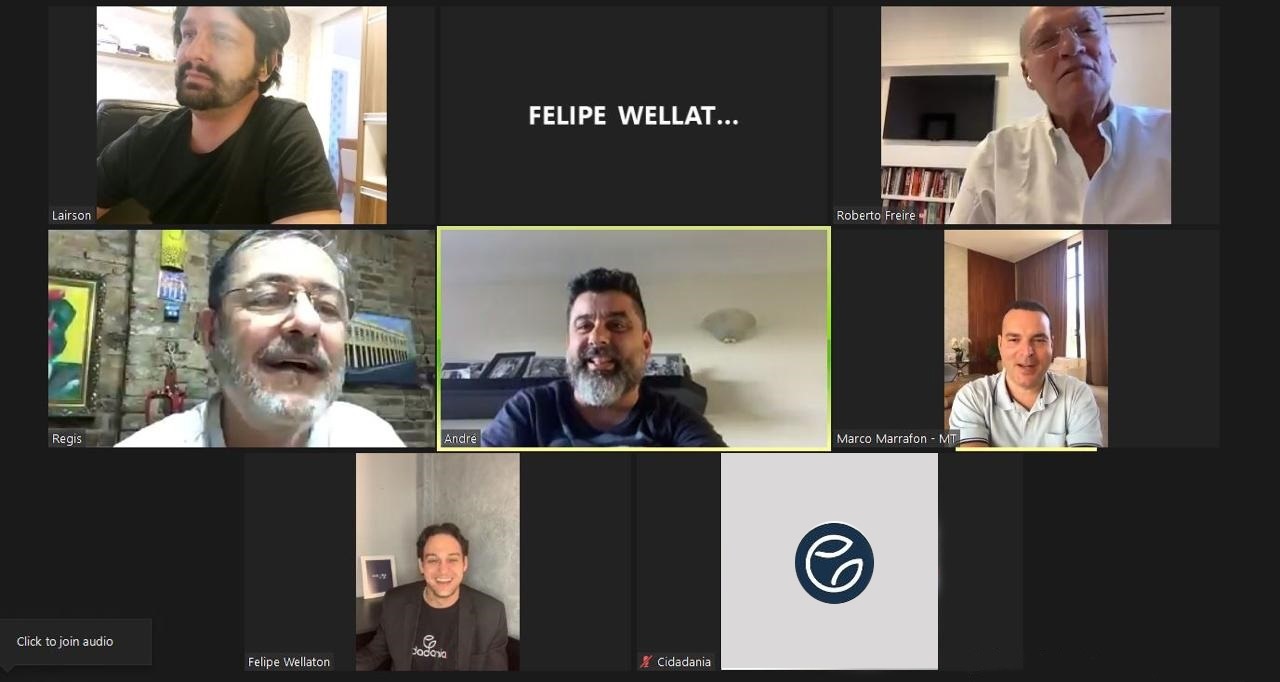 As lideranças nacionais do partido Cidadania se reuniram nessa semana com o vereador Felipe Wellaton para garantir o total apoio à sua candidatura a prefeito de Cuiabá.A reunião aconteceu via plataforma virtual e contou com o presidente nacional do Cidadania, Roberto Freire e o presidente estadual em Mato Grosso, Marco Marrafon.