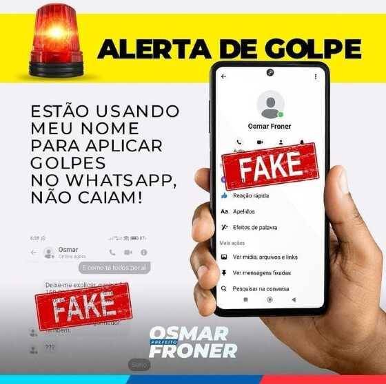 O prefeito de Chapada dos Guimarães, Osmar Froner alertou amigos e população que seu whatsapp foi clonado, e que estariam usando seu nome, para aplicar golpes.