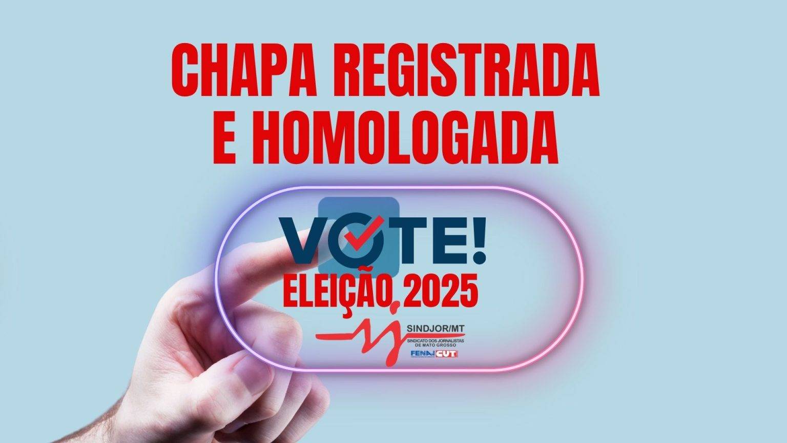 A Comissão Eleitoral do Sindicato dos Jornalistas de Mato Grosso – Sindjor MT homologou na terça-feira (27/05) a única chapa inscrita para concorrer à Eleição do Sindjor MT – Gestão 2025/2026.