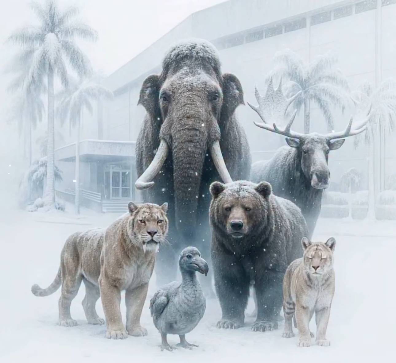 Ao todo, são 18 esculturas de grande porte, distribuídas por todos os pisos do shopping, como mamute, tatu, leão-das-cavernas, rinoceronte, crocodilo, alce e tigres dente de sabre, algumas chegando a mais de 4 metros de altura.
