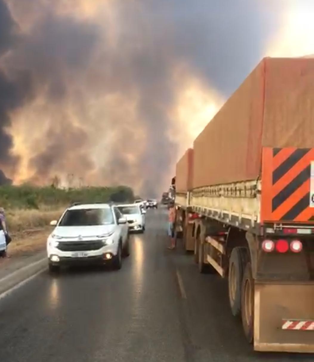 Motoristas que passavam próximo ao local gravaram a fumaça que é vista a uma longa distância. O fogo está ne região da Pensão Seca.