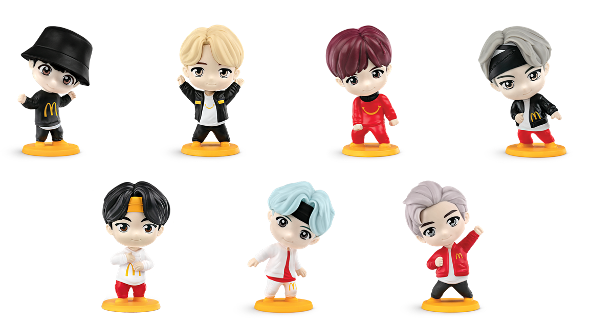 A campanha inclui um total de 14 brinquedos, disponíveis a partir de 9 de setembro em todos os restaurantes McDonald’s no Brasil. Os TinyTAN de RM, Jung Kook, SUGA, Jimin, Jin, j-hope e V aparecem em duas versões cada: uma inspirada diretamente nos artistas e outra ambientada no mundo do McDonald’s.