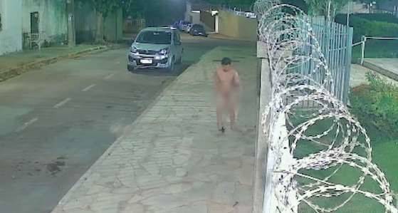 Um homem, ainda não identificado, foi flagrado por câmeras de segurança caminhando completamente nu em uma área residencial de Cuiabá na noite do último sábado (5). O indivíduo, que usava apenas uma tornozeleira eletrônica, foi filmado andando tranquilamente pelo bairro Araés.
