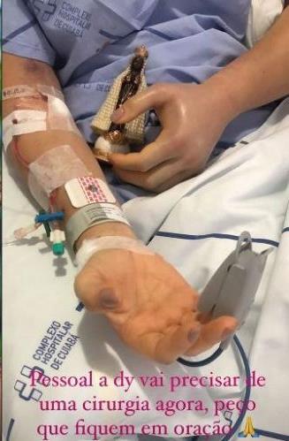 A médica Dieynne Saugo, de 33 anos, picada por uma jararaca em uma cachoeira em Nobres, no domingo (30) teve que ser operada. Essa informação está nos stories do Instagram dela. “Pessoal, a Dy vai precisar de uma cirurgia agora, peço que fiquem em oração”, diz a publicação que mostra o braço e aimagem de Nossa Senhora Aparecida.