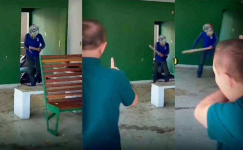 Nesse momento, o indivíduo aparece e ao ver o vereador, pega um pedaço de pau e começa a ameaçar jogar o objeto. Aparentemente com medo, Alencar se afasta e tenta falar com o morador da rua. “Não, não, assim não”, porém, é totalmente ignorado.