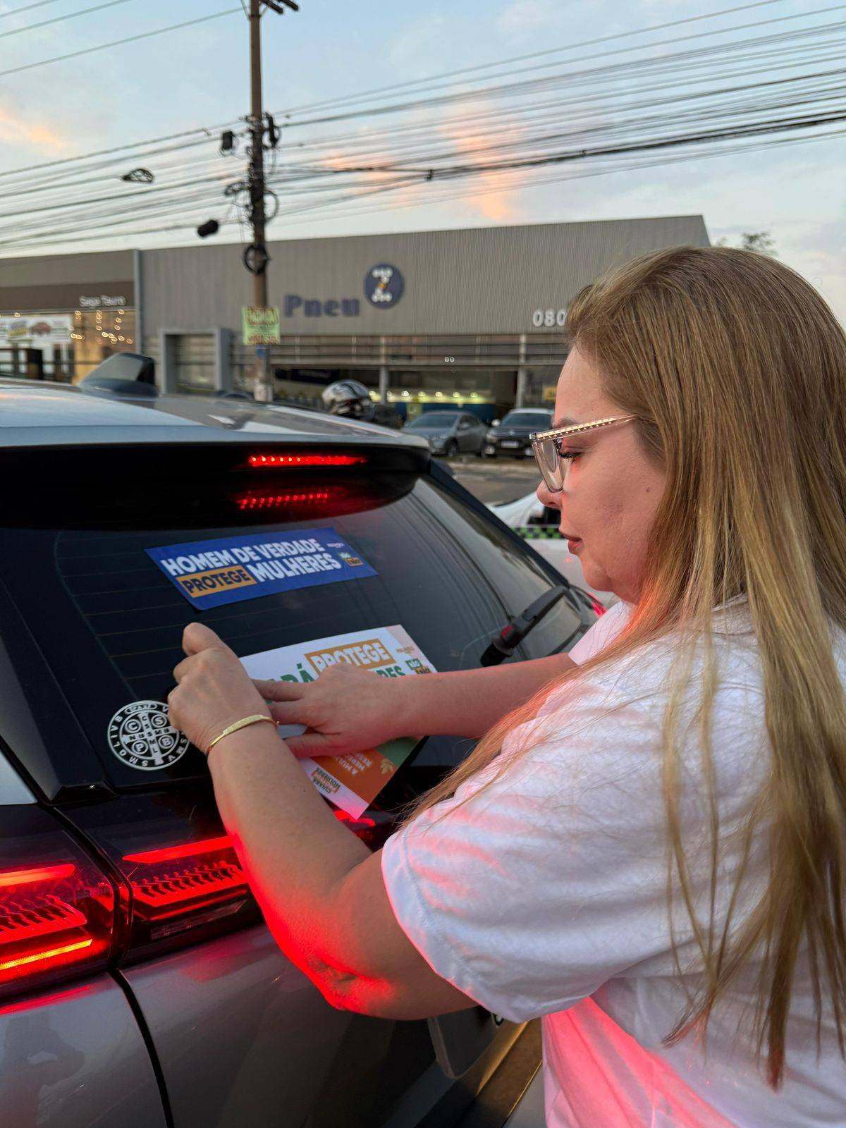 A presidente da Câmara Municipal de Cuiabá, vereadora Paula Calil (PL), promoveu na tarde desta sexta-feira (3) um adesivaço de veículos e a distribuição de panfletos informativos na avenida Fernando Corrêa da Costa. A mobilização integra a campanha “Homens de Verdade, Protegem Mulheres”, de autoria da parlamentar, que busca incentivar o engajamento masculino na prevenção da violência doméstica e do feminicídio.