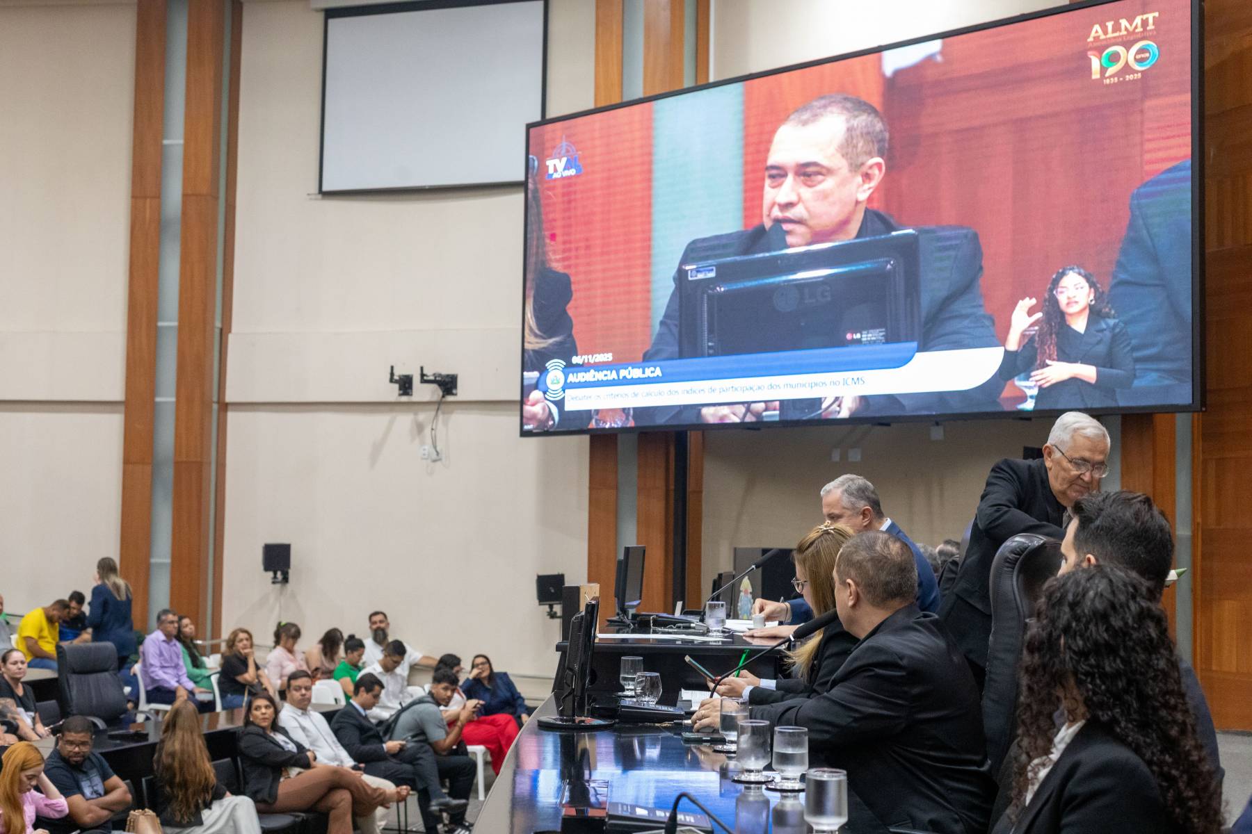 A desigualdade na distribuição do Imposto sobre Circulação de Mercadorias e Serviços (ICMS) entre os municípios de Mato Grosso foi tema de uma audiência pública realizada nesta quinta-feira (6), na Assembleia Legislativa (ALMT). Convocado pelo deputado estadual Faissal Calil (Cidadania), o encontro reuniu parlamentares, técnicos, prefeitos e representantes da Prefeitura de Cuiabá, entre eles os secretários Marcelo Bussiki (Fazenda), Murilo Bianchini (Planejamento Estratégico) e o auditor fiscal e secretário-adjunto da Receita Municipal Thiago Semensato, para discutir os impactos da Lei Complementar nº 746/2022, atualizada pela LC 811/2024, e do Decreto 1.206/2024, que redefiniram o cálculo do Índice de Participação dos Municípios (IPM).