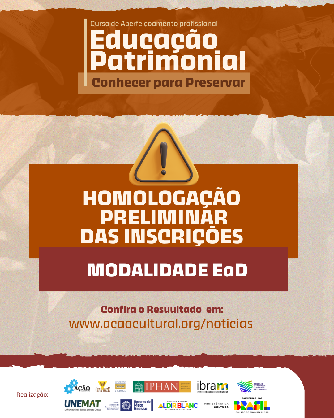 A homologação das inscrições nas modalidades presencial bolsista e não bolsista está prevista para até às 23h59min de hoje (28). O cronograma atualizado, bem como as homologações de cada modalidade poderão ser consultados no site https://acaocultural.org/noticias/