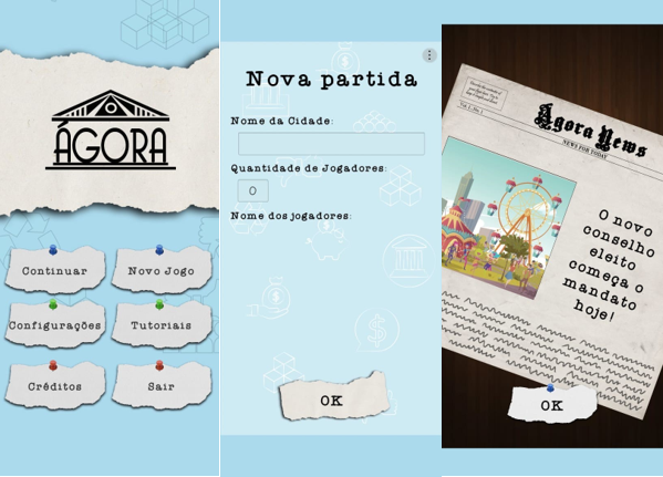 O funcionamento do jogo é simples e intuitivo - e mesmo assim há um tutorial detalhado no menu inicial: um grupo de pessoas precisa de apenas um dispositivo para jogar, escolher um nome para a cidade fictícia que será criada e depois indicar a quantidade e o nome dos integrantes dessa partida. A imagem de um jornal, o Ágora News, vai anunciar a criação desse conselho e, assim, as discussões poderão começar.