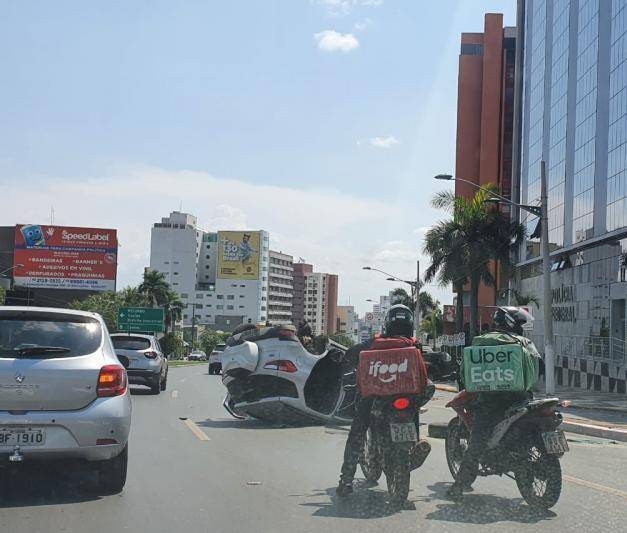 Com isso, o veículo capotou no meio da avenida do CPA, ficando completamente destruído.