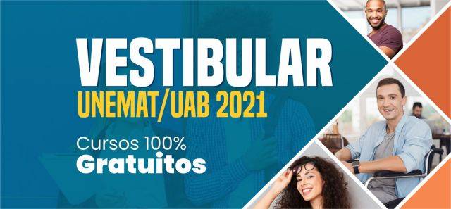 A Universidade do Estado de Mato Grosso (Unemat) lança edital para o seletivo simplificado com oferta de 1.000 vagas para cursos na modalidade Educação a Distância, para matrícula no período letivo de 2021/1. São oferecidos sete cursos, para 34 turmas em 25 municípios do estado, onde há polos de apoio presencial UAB/Unemat.