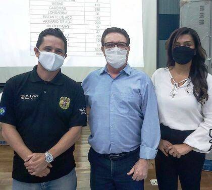Entre os itens adquiridos, estão: 01 viatura (transporte de presos), 03 viaturas 4 x 4, mesas (413), cadeiras (280), estantes de aço (131), armários de aço (230), micro-ondas (27), fogão (27), ar condicionados de 12 mil 18 mil BTUs (424), bebedouros (61), carteiras funcionais (5 mil) e distintivos (mil).