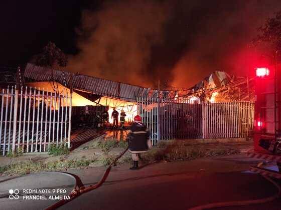 Na madrugada desta terça-feira(23) os bombeiros foram chamados para conter um incêndio no barracão da loja Pantanal Autopeças na Avenida da Feb, em Várzea Grande.