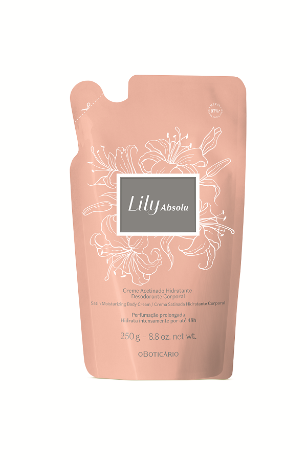 Alinhado ao seu compromisso com a sustentabilidade e atento às soluções práticas para o dia a dia de seus consumidores, o Boticário lança refis da família de cremes Lily Acetinados. Se comparado com o item regular, que é vendido em pote de vidro, o formato reduz em 97% o consumo de material de embalagem, além de possuir um ótimo custo-benefício. Com a utilização do refil, em um ano é possível ter a economia* de 625 toneladas de material de embalagem, sendo 551 toneladas de vidro e 74 toneladas de plástico que deixam de ser dispensadas no meio ambiente!