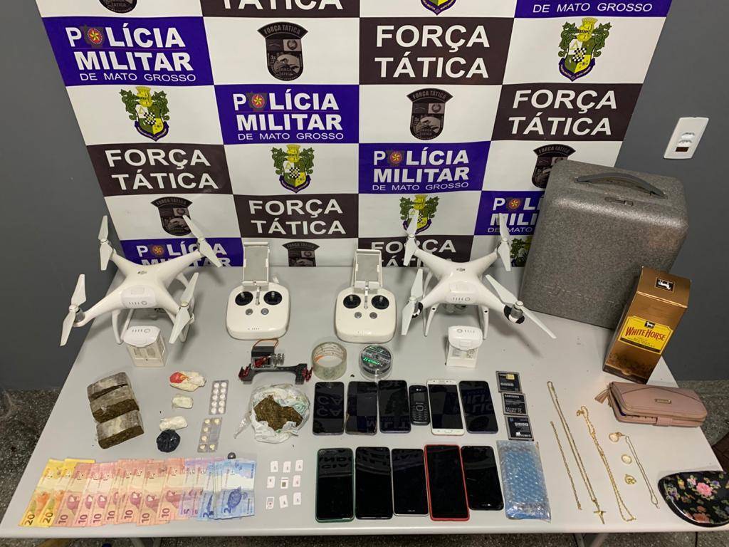 Os cinco suspeitos, todos os celulares, drones e demais produtos apreendidos foram entregues no plantão da 1ª Delegacia de Polícia de Rondonópolis.