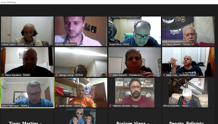 Participaram da reunião, que foi conduzida pelo presidente Alaor Azevedo, com a participação do diretor da entidade, Geraldo Campestrini, e do secretário geral, Pablo Ribeiro, os presidentes das Federações do Maranhão, George Cabral; Pernambuco, André Silva; Piauí, Jadelson Ribeiro; Ceará, Valberto Almeida; Rio Grande do Norte, Tiago Martins; Mato Grosso, Sandro Abrão; Mato Grosso do Sul, Marco Tavares; Distrito Federal, Joran Freire; Rio de Janeiro, Rosiane Viana; Minas Gerais, Renato Belisário; São Paulo, Lidney Castro; Paraná, Edson Marroque; Santa Catarina, Vilmar Schindler; e, Rio Grande do Sul, Marco Bandeira.