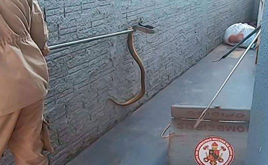 Em casos assim o moradorr não deve em hipótese alguma tentar tocar na cobras por não saber a especie e se é venenosa.