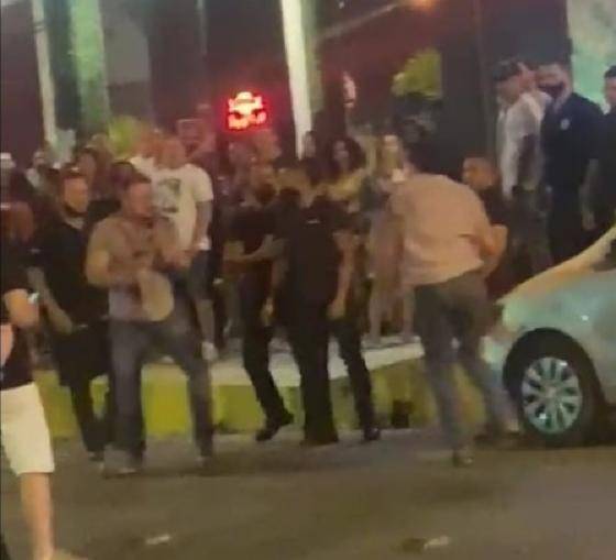 A confusão começou por volta das 21h50 e um homem ficou ferido com uma garrafada na cabeça após a briga.