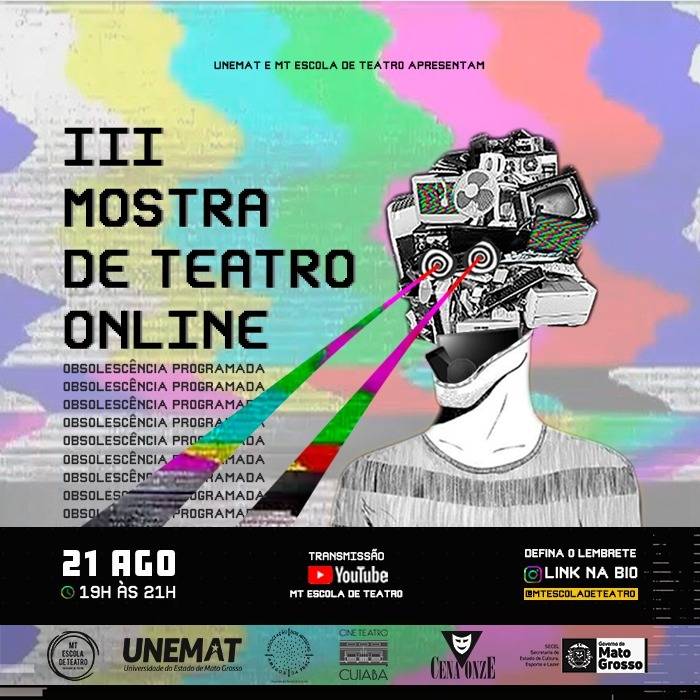 Consistindo em três cenas de Teatro elaboradas por diferentes núcleos de pesquisa das sete ênfases oferecidas pela Escola (atuação, cenografia e figurino, direção, dramaturgia, iluminação, produção e sonoplastia), a III Mostra de Cenas Online inova ao levar o Teatro às plataformas virtuais. Os ingressos são gratuitos e o acesso é simples. Basta visitar e ativar o lembrete no vídeo presente no canal do Youtube da MT Escola de Teatro com o tema: “Obsolescência Programada”.