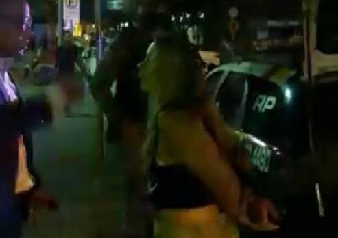 Vídeos que circulam pelas redes sociais mostram a jornalista sendo detida em um dos bares da Praça Popular. Os policiais seguiram até onde ela estava e a levaram para a viatura. Nas imagens, é possível ver a tornozeleira eletrônica em uma das pernas da acusada.