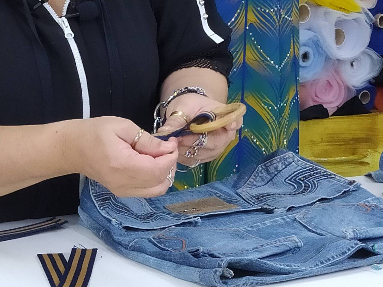 “Vamos abordar os processos de upcycling e a customização onde serão desenvolvidas um total de 10 peças entre acessórios e peças de vestuário, utilizando o jeans como matéria prima principal, peças de vestuário que seriam descartadas, peças que estavam em desuso, e que com as técnicas foi possível dar vida nova a essas peças, resinificando essas peças fazendo com que elas possam voltar a ser reusadas”, explica Verena.