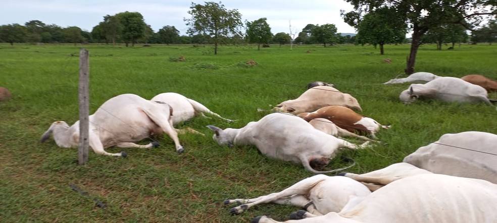 A queda de um raio em um sítio localizado no assentamento Ema, em Alto Paraguai (MT), atingiu e matou 15 cabeças de gado que estavam no pasto, nesse domingo (5).