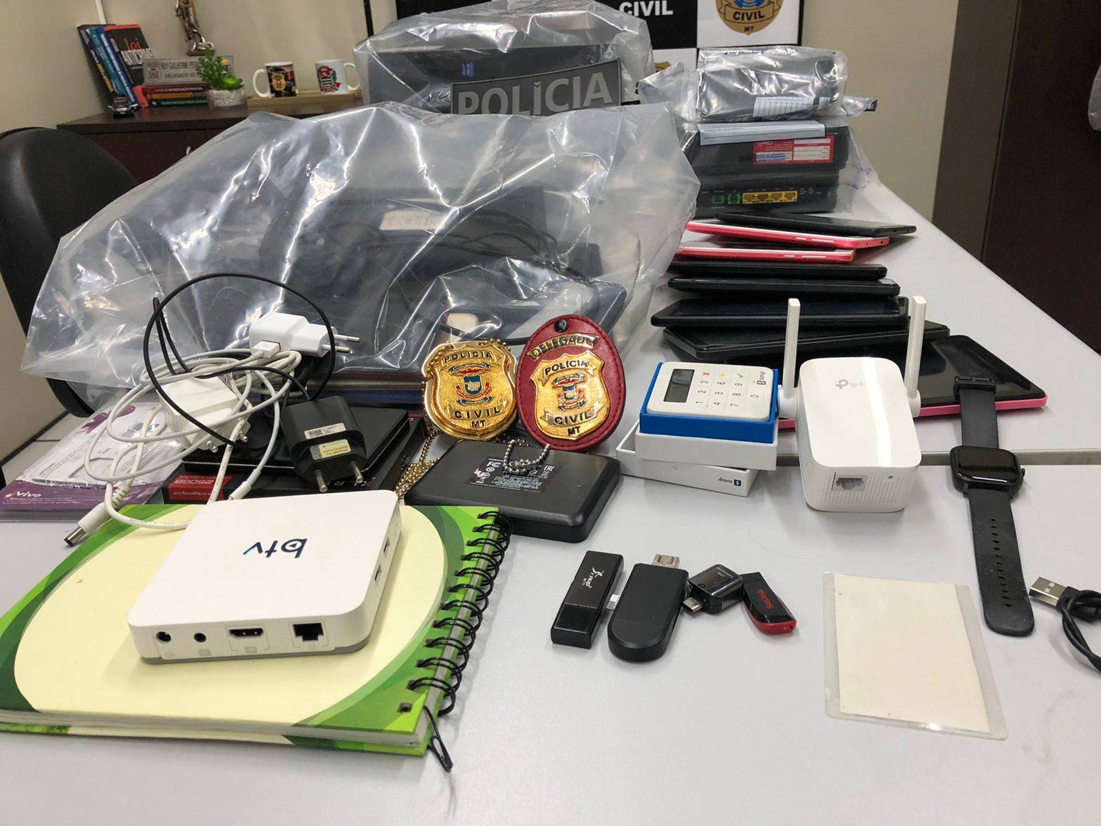 Na Operação Fake News, a Polícia Civil, por meio da Delegacia Especializada de Repressão a Crimes Informáticos (DRCI) cumpriu seis mandados de busca e apreensão domiciliares em Cuiabá, com alvo em três investigados. Um dos mandados é cumprido na Prefeitura Municipal de Cuiabá.