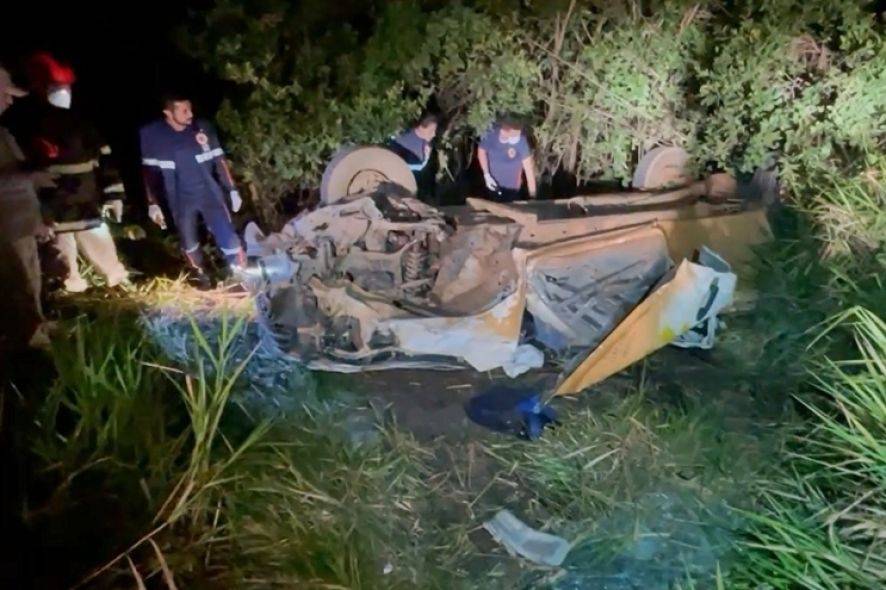 Informações preliminares indicam que a Hilux teria batido na traseira do caminhão e depois entrado na pista contrária. O veículo colidiu com outro caminhão e capotou na lateral da pista.