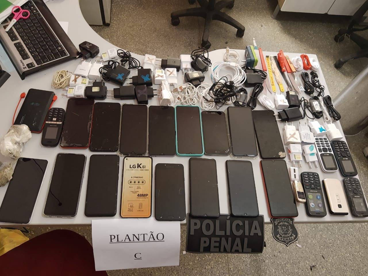Em balanço realizado pelo Sindicato dos Servidores Penitenciários de Mato Grosso (Sindspen-MT), foi registrada a apreensão de 78 celulares, 25 carregadores, além de dezenas de acessórios para celulares como fones de ouvido e cabos USB, além de várias porções de substâncias análogas a maconha e cocaína e ainda dezenas de comprimidos de estimulante sexual.